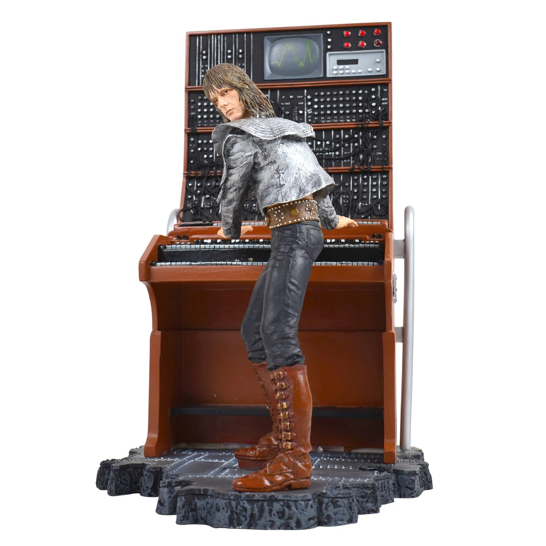 The sculpture is created in intricate detail by a team of artists who have hand-painted and hand-numbered this collectible. The statue comes with a certificate of authenticity which is printed on the bottom of the base. The figure is created in 1/9 scale which is the same scale as all figures in the Rock Iconz Series. Keyboard stands just under 12″ high. The large keyboard parts are cast in resin have a slightly rough finish by design.