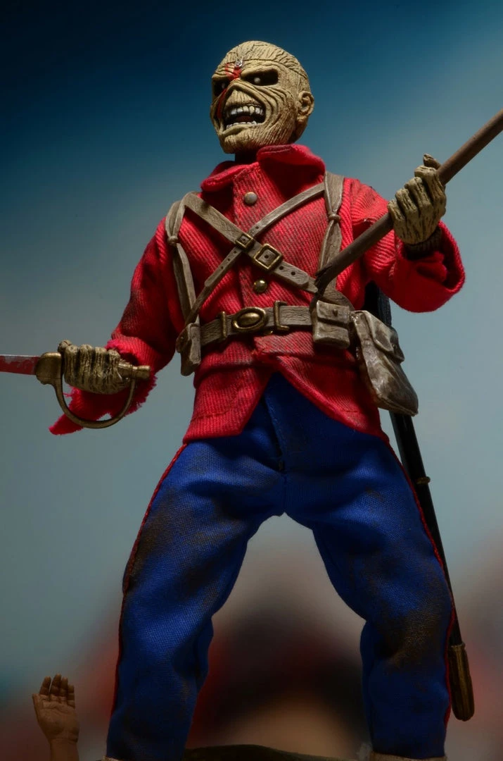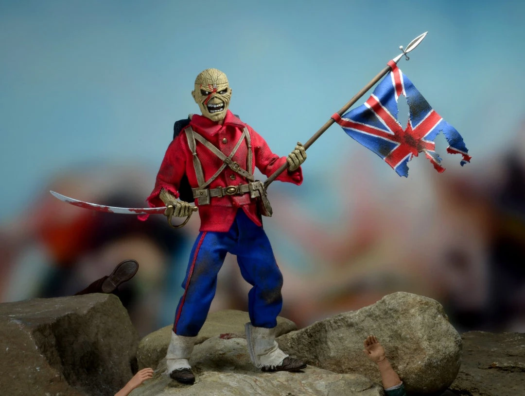 Get your retro fix with this poseable 8″ figure of Eddie, straight from the cover of Iron Maiden’s single The Trooper! The legendary metal mascot is dressed in tailored fabric clothing similar to the retro toy lines that helped define the licensed action figure market in the 1970s. The Trooper Eddie comes with tattered Union Jack and saber accessories.