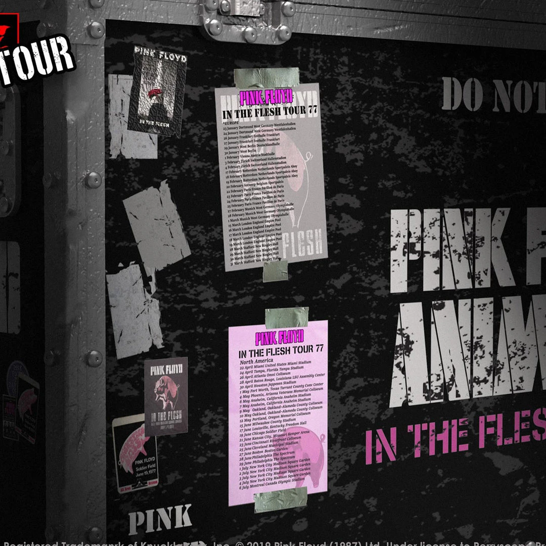 The road case has the 1977 Pink Floyd Animals “In the Flesh” tour logo and measures 6 1/2-inches wide x 5 1/2-inches tall x 4 1/2-inches long.
