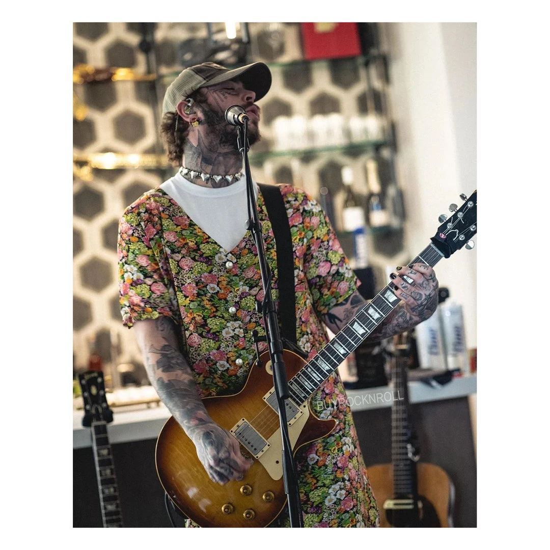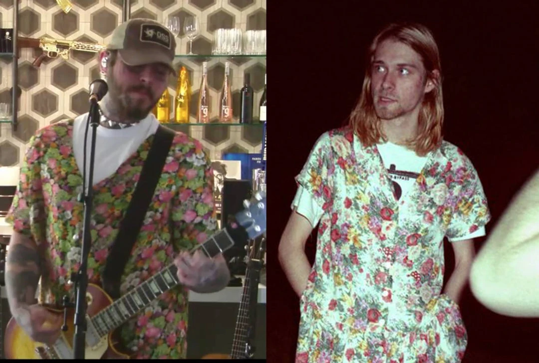 The rapper put on the concert as a COVID-10 fundraiser raising $2.6 million in a few hours. “He recreated an iconic Cobain look for the occasion. In a matronly, long floral dress just like the one Cobain wore to a 1990 Nirvana performance in Amherst, Massachusetts, he covered such classics as “Heart-Shaped Box” and “Lithium.” True to form, though, Post Malone put his spin on the outfit—he added a silver choker made up of little heart charms and a brown trucker hat.” VOGUE