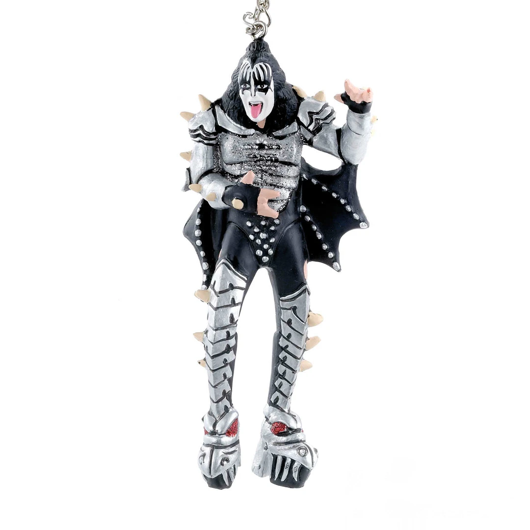 This Kurt Adler KISS® Demon blow mold ornament is a fun addition to any holiday décor or Christmas tree. This ornament features Gene Simmons iconic “Demon” persona in silver dragon boots, black pants, silver armor and black bat wings with the face makeup completing the look.