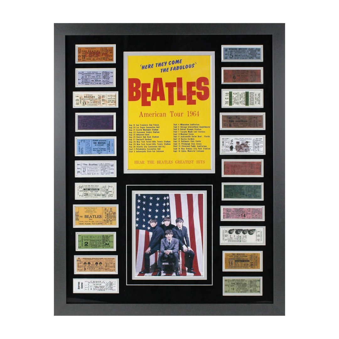 Satisfy your Beatlemania with this officially licensed collage depicts every ticket from every venue held for the Beatles’ American tour during 1964. This framed 20×24 collage comes ready to be hung up on your wall to show off to your friends and family. Steiner Sports is an official licensee of The Beatles and Apple Corps LTD. Includes a photo and the tour schedule