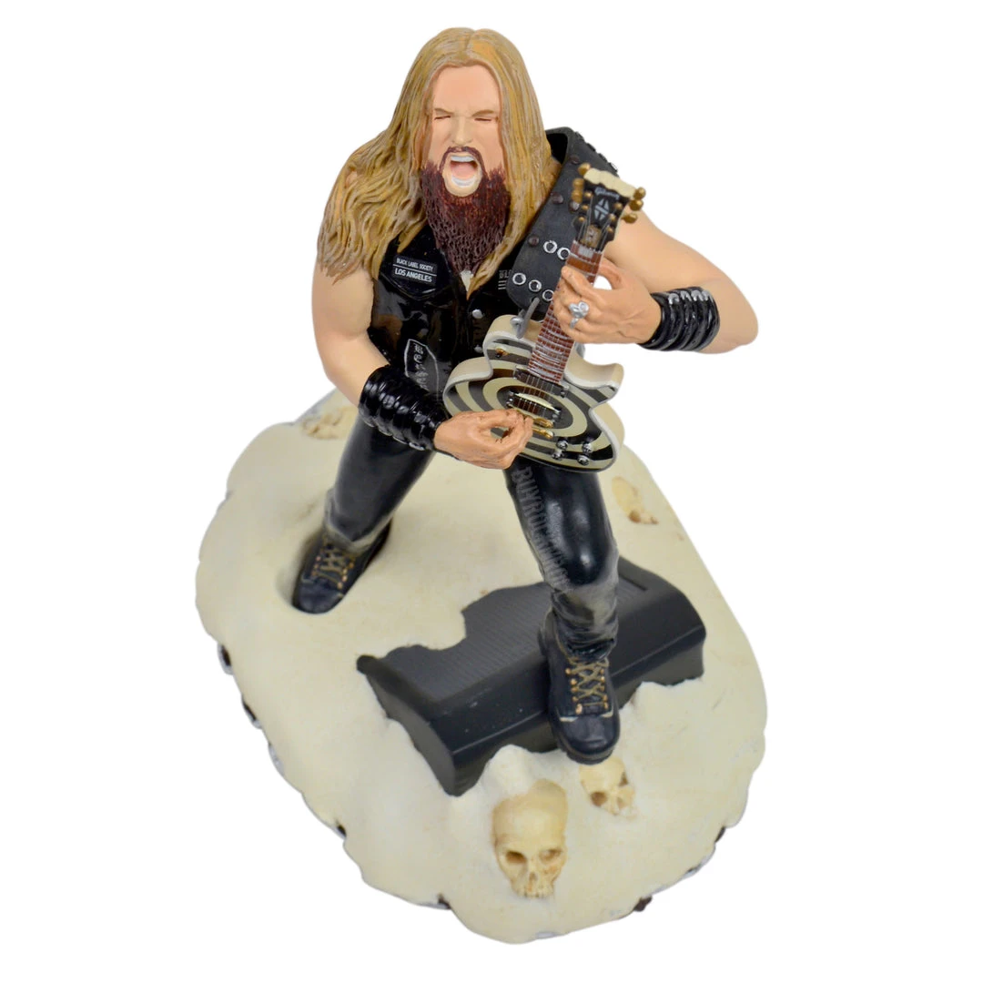 This shocking 9-inch sculpture presents a startlingly realistic likeness of Zakk Wylde with his signature black-and-white Bullseye Gibson Les Paul. It’s an officially licensed product from Zakk Wylde and Gibson Guitars, and a limited edition of 3,000 pieces. Zakk is cast in a polyresin, hand-numbered, hand-painted in marvelous detail, and displayed on a hard-to-believe wooden base.